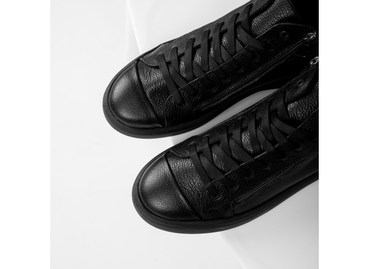 Ці стильні черевики виготовлені з натуральної чорноі шкіри, що надає їм елегантного та універсального вигляду, ідеально підходять як для повсякденного, так і для більш формального стилю. Внутрішнє утеплення з м’якого флісу забезпечує комфорт і тепло в холодну погоду, що робить їх ідеальним вибором для осінньо-зимового сезону.